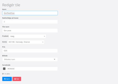 Man kan sætte sine Tiles op til et bestemt varenummer eller en bestemt Finans konto.